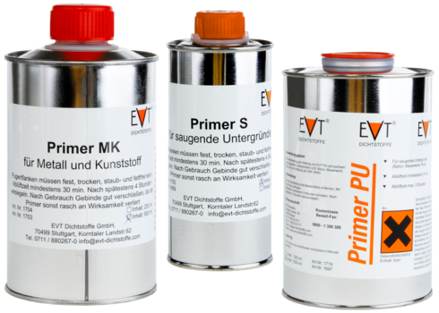 Produkt-Info Zur Haftverbesserung von Silikon-, PU- und Hybrid-Dichtstoffen Für Metalle und Kunststoffe: Primer MK Für saugende Untergründe: Primer S (Bei PU: Primer PU, bei Hybrid: Primer Hybrid) Farblos bis hellgelb Nicht vergilbend Anwendungsgebiete Zur Verbesserung der