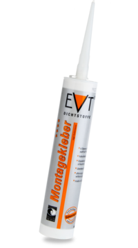 EVT Montagekleber ist ein lösemittelfreier Acrylkleber mit hoher Anfangsklebkraft, der durch Austrocknen härtet.