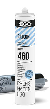 Silikon-Dichtstoff für die gängigsten Bauabdichtungen EGOSILICON 360 BAUPROFI eignet sich für Anschluss- und Bewegungsfugen speziell bei der Glasversieglung zur robusten Anwendung im Innen- und Außenbereich sowie in Verbindung mit beschichtetem Holz, Beton, Fliesen, Glas,
